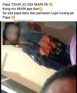 2 diantara kalimat itu “Ada apa dengan malam ini? Papa tidur jo tidak usah main Hp” yang kemudian dilanjutkan dengan 2 bait tambahan privasinya berisi kalimat “So ada papa baru dang pantasan lupa pa torang pe papa”.