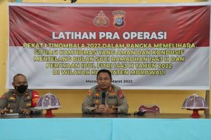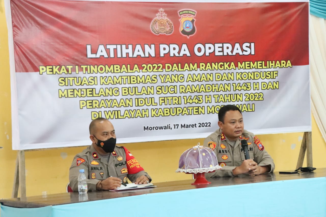 MOROWALI, Sulawesi Tengah- Jelang bulan suci Ramadhan 1443 H/2022 dan perayaan Idul Fitri 2022, Polres Morowali menggelar latihan pra operasi pekat I Tinombala 2022. bertempat di Aula Polres Morowali, Kamis (17/03/2022).