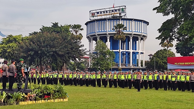 Apel dipimpin oleh Kapolresta Magelang Kombes Pol Herbin Garbawiyata Jaya Sianipar, S.I.K., S.H. bersama Kapolres Magelang Kota AKBP Anita Indah Setyaningrum dan Komandan Kodim 0705/ Magelang Letkol Inf Jarot Susanto, S.H., M.Si.