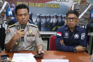 Kabidhumas Polda Sulteng, Kompol Didik Supranoto didamping Kasubdit Penmas Humas Polda Sulteng, Kompol Sugeng Lestari.