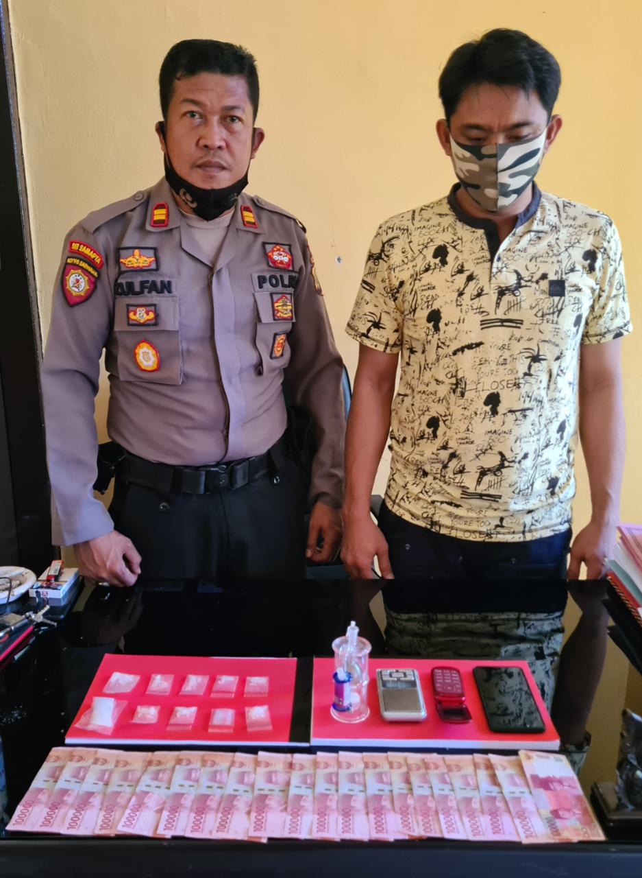 Karena Narkoba ini sangat berbahaya bagi kesehatan serta merusak masa depan generasi muda yang nota bene adalah generasi penerus Bangsa,” akunya, seraya menambahkan, selain 10 (sepuluh ) bungkus paket Narkoba yang diduga sabu yang telah dikemas dalam plastik bening, 1 (Satu) unit timbangan Digital dan 2 (Dua) buah alat isap (Bong), ada juga 1 (satu) unit Hp merk Samsung lipat warna merah, 1 (satu) unit Hp Vivo serta uang tunai sebanyak 2.000.000 rupiah sebagai babuk.