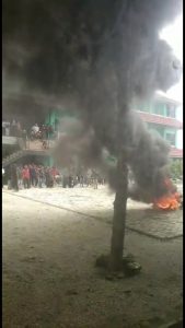 Poso, Nuansapos.Com – Asap tebal berwarna hitam pekat dan bau menyengat dari karet ban yang dibakar mewarnai demonstrasi Mahasiswa Unsimar Poso, Selasa (21/9) siang tadi.