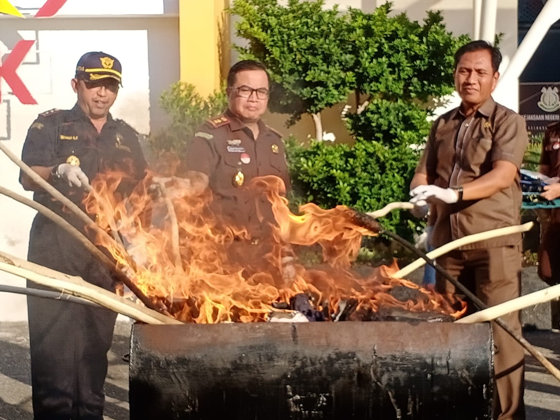 Pemusnahan barang bukti tindak pidana umum yang telah memperoleh kekuatan hukum (Inkracht) itu, berlangsung di halaman kantor Kejaksaan Negeri Banggai, juga dihadiri Ketua DPRD Banggai dan Forkopimda.