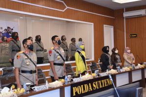 Kapolda Sulawesi Tengah Irjen Polisi Rudy Sufahriadi didampingi ibu Asuh Polwan Polda Sulteng Luly Rudy Sufahriadi secara virtual turut menyaksikan syukuran hari jadi Polwan RI ke 73 di Ruang Command Center Polda Sulteng, Rabu (1/9/2021) sore.