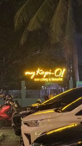 Resto yg terletak di ujung jalan Kartini ini,merupakan area ramai di lalui masyarakat,terlihat padatnya kendaraan tak heran Resto My kopi O ini sangat ramai di kunjungi di jam-jam tertentu.tak heran saya juga adalah pengunjung tetap Resto ini,karna kelezatan makananya.sering menjamu tamu di My kopi O ini.