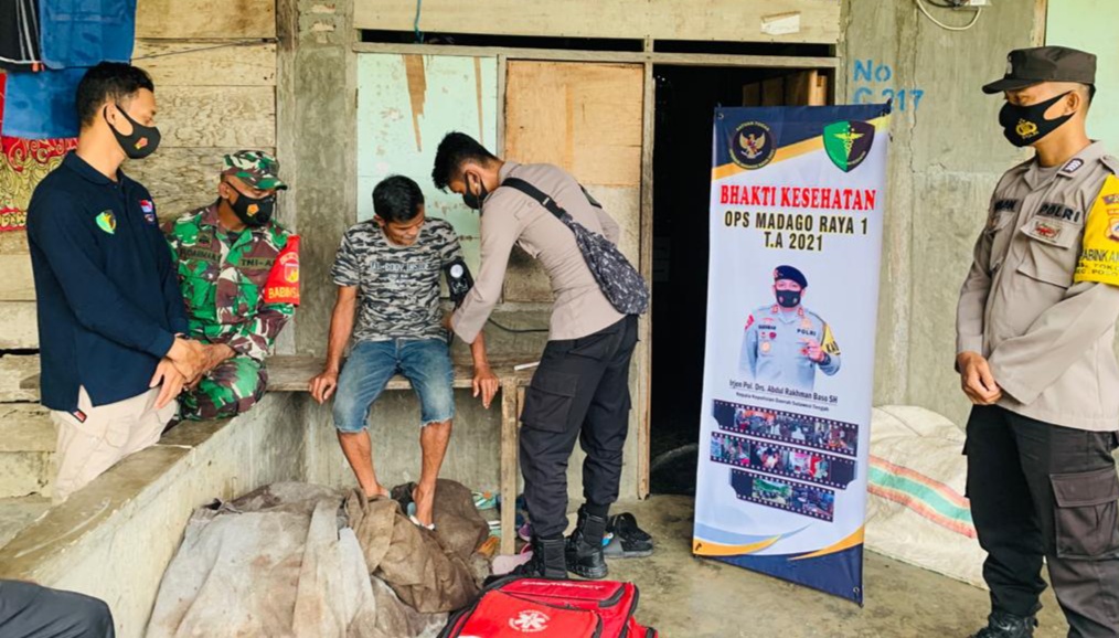 POSO, Nuansapos.com – Guna membantu menjaga kondisi kesehatan pada masyarakat, Satuan Tugas (Satgas) V, Bantuan Operasi (Banops) Madago Raya 2021 Tahap I, Subsatgas Dokkes Polda Sulteng yang dipimpin oleh Kasubsatgas Dokkes, AKBP dr. Judi Dermawan, M.Kes turun melaksanakan kegiatan Bakti Sosial (Baksos) Kesehatan dengan melakukan pemeriksaan dan pemantauan kesehatan bagi masyarakat di Desa Tokorondo, Kecamatan Poso Pesisir, Kabupaten Poso, Minggu (28/02/2021).