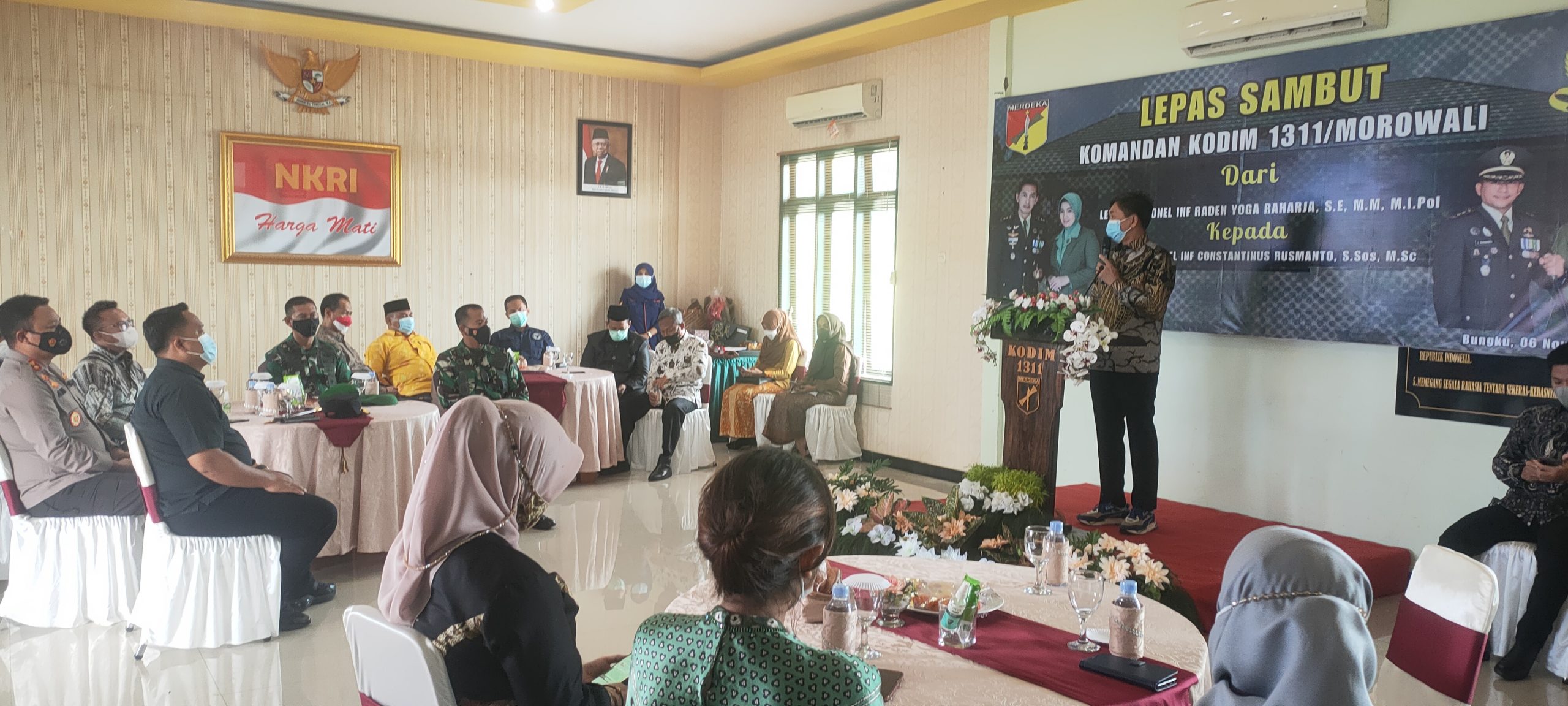 MOROWALI, Nuansapos.com- Acara lepas sambut Dandim 1311/Morowali dari Letkol (Inf) Raden Yoga Raharja MI.Pol ke Letkol (Inf) Constantinus Rusmanto S.Sos MSc, di hadiri dua Bupati dan dua Kapolres. Yakni, Bupati Morowali Utara, Dr.dr.Delis Julkarson Hehi MARS dan Bupati Morowali, Drs.Taslim serta Kapolres Morowali AKBP Ardi Rahananto SE SIk MSi, dan Kapolres Morut, AKBP Ade Nuramdani. Sabtu (06/11/2021), Bertempat di Aula Kesatria Kodim 1311/MRW, Kompleks KTM Desa Bahomohoni, Kecamatan Bungku Tengah, Kab.Morowali, Provinsi Sulawesi Tengah.