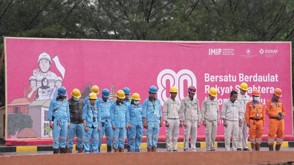 Gelora Semangat Cinta RI Tertanam Di Sanubari Para Karyawan PT IMIP Hujan Pun Tak Gentar Merah Putih Berkibar Di HUT Ke 80 RI