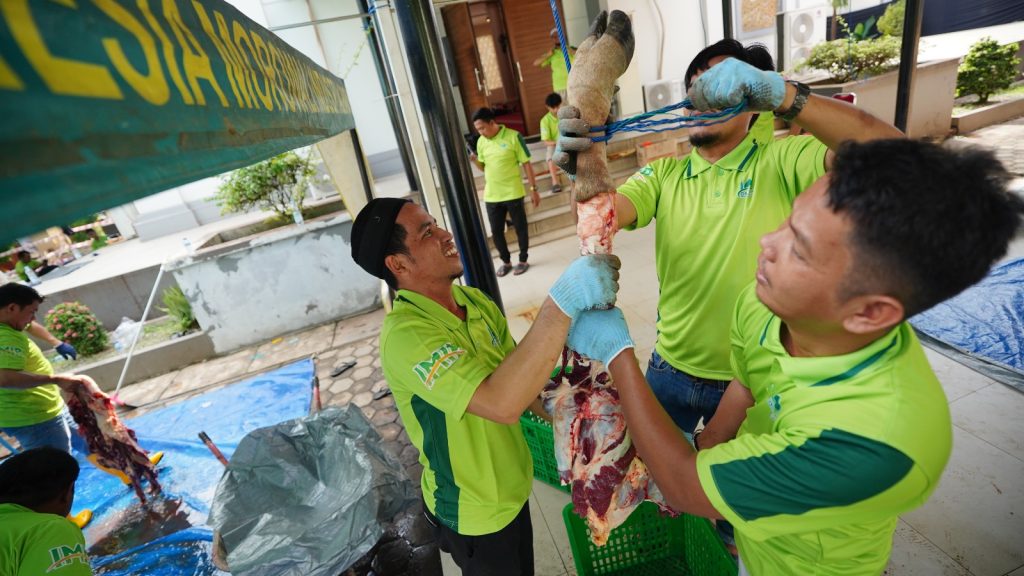 Morowali, Nuansapos.com – Dewan Kemakmuran Masjid (DKM) PT Indonesia Morowali Industrial Park (IMIP) membagikan 1.000 paket daging sebagai wujud semangat berbagi kebahagiaan dalam menyambut Hari Raya Idul Adha 1446 hijrah pada Jum’at (6/6/2025) pagi. Ketua DKM PT IMIP, Djoko Suprapto mengatakan bahwa tahun ini ada sebanyak 18 ekor sapi disembelih dan dagingnya dibagi – bagikan kepada masyarakat yang berhak.