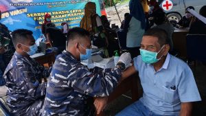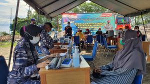 dalam rangka Serbuan Vaksinasi ini, dan semoga Indonesia segera bisa melewati Pandemi Covid-19 saat ini dan salam sehat”, Ucap perwira TNI AL tiga bunga dipundaknya itu sembari menyemangati.