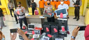 “Para pelaku pencurian ini sudah tak lagi melihat tempatnya, kantor pemerintahan Kemenag Morowali serta tempat ibadah Mesjid dan Gereja sudah disasar. Jadi, kami telah menangkap para pelakunya, 3 orang sebagai pelaku pencurian dan 2 orang sebagai penadah. sementara 3 orang lainnya teman para pelaku masih buron alias DPO,” Terang Kapolres Morowali AKBP. Bayu Indra Wiguno melalui Kabag Ops Kompol. Nasruddin, SIK, SH.