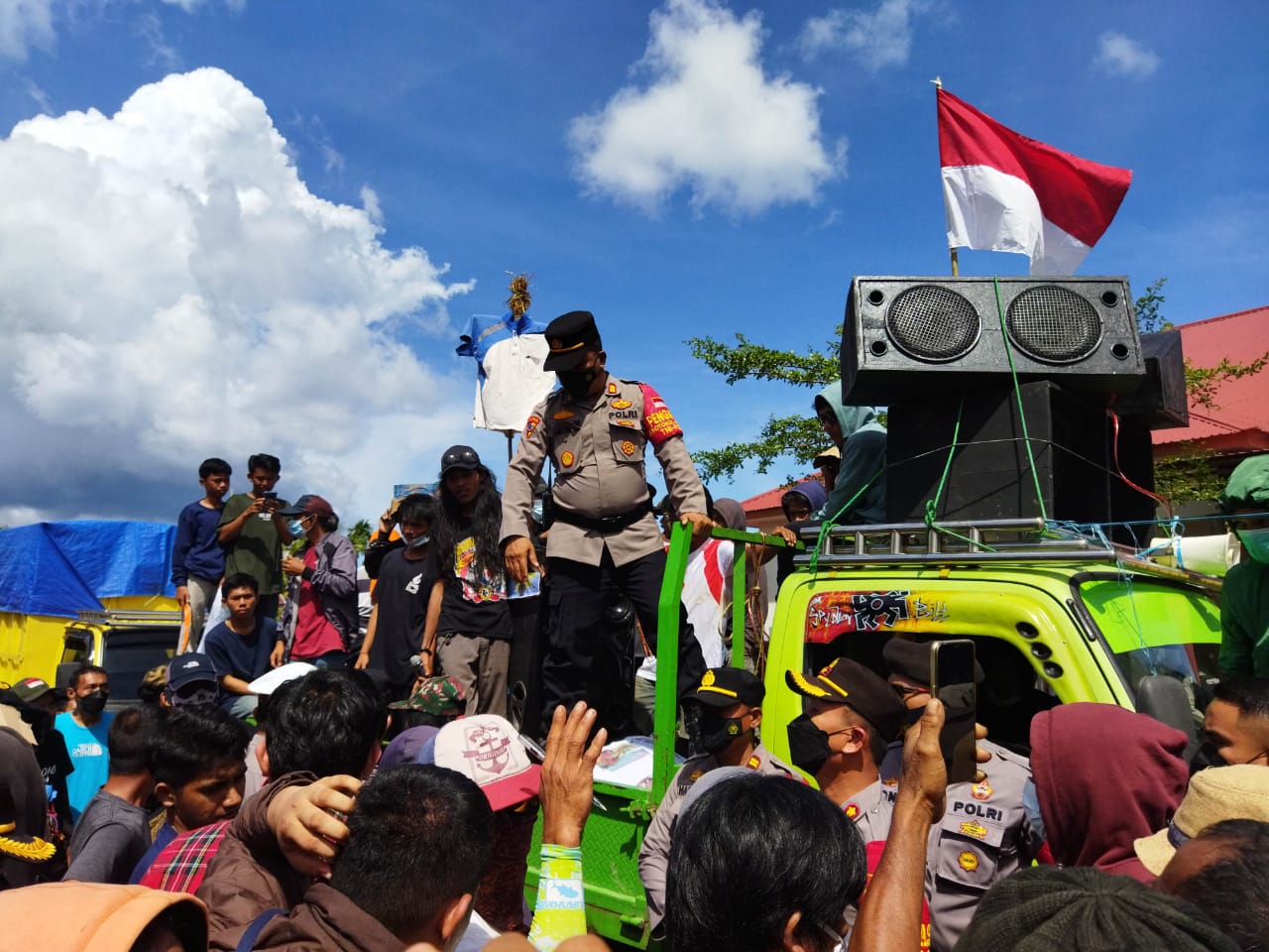 Setibanya di lokasi, Kapolres Parimo AKBP YUDY ARTO WIYONO, SI.K bersama Kabag Ops AKP JUNUS ACHPAH bersama PJU secara humanis tanpa kekerasan melakukan negosiasi dan memberikan arahan bahwa aksi unjuk rasa tersebut diijinkan dan dijamin oleh UU asalkan tidak mengganggu ketertiban umum atau merugikan masyarakat lainnya seperti berorasi di badan jalan trans sulawesi sehingga kendaraan tidak dapat melintas termasuk ambulance dan menimbulkan kemacetan atau antrian kendaraan yang sangat panjang serta merugikan masyarakat lainnya.