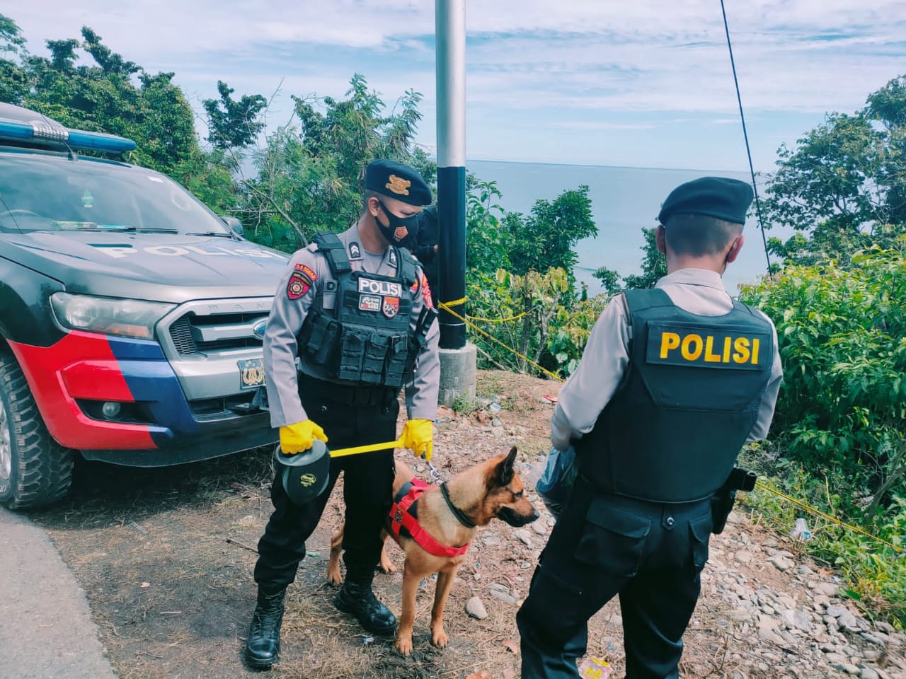 Toli-Toli, Nuansapos.com – Satu ekor anjing pelacak yang tergabung dalam unit K9 Ditsamapta Polda Sulteng hari ini diturunkan ke lokasi Tempat Kejadian Perkara (TKP) ditemukannya sepeda motor dan barang lain yang diidentifikasi milik dr. Faisal di lereng atau dinding jurang jalan trans Sulawesi Desa Lingadan Kecamatan Dako Pamean Tolitoli, Rabu (11/5/2022).