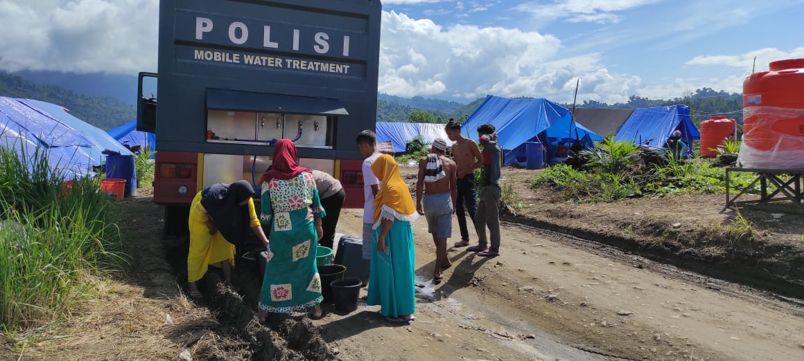 Terpisah Kabidhumas Polda Sulteng Kombes Pol. Didik Supranoto melalui rilis yg diterima media ini Senin (3/8) mengatakan. Polda Sulteng benar ada mengirimkan satu unit mobil watertreatment yang saat ini ditempatkan di lokasi pengungsian daerah Masamba II, pengungsian Meli dan warga di jalan Simpuru Siang Masamba.