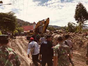 Usai meninjau lokasi banjir bandang di Desa Bolapapu, Kulawi, Sigi, Sulteng. Doni meminta aktivitas penebangan pohon liar dihentikan. “Kita harus jaga bersama sama, bencana adalah urusan bersama, stop tebang pohon liar” pesannya.