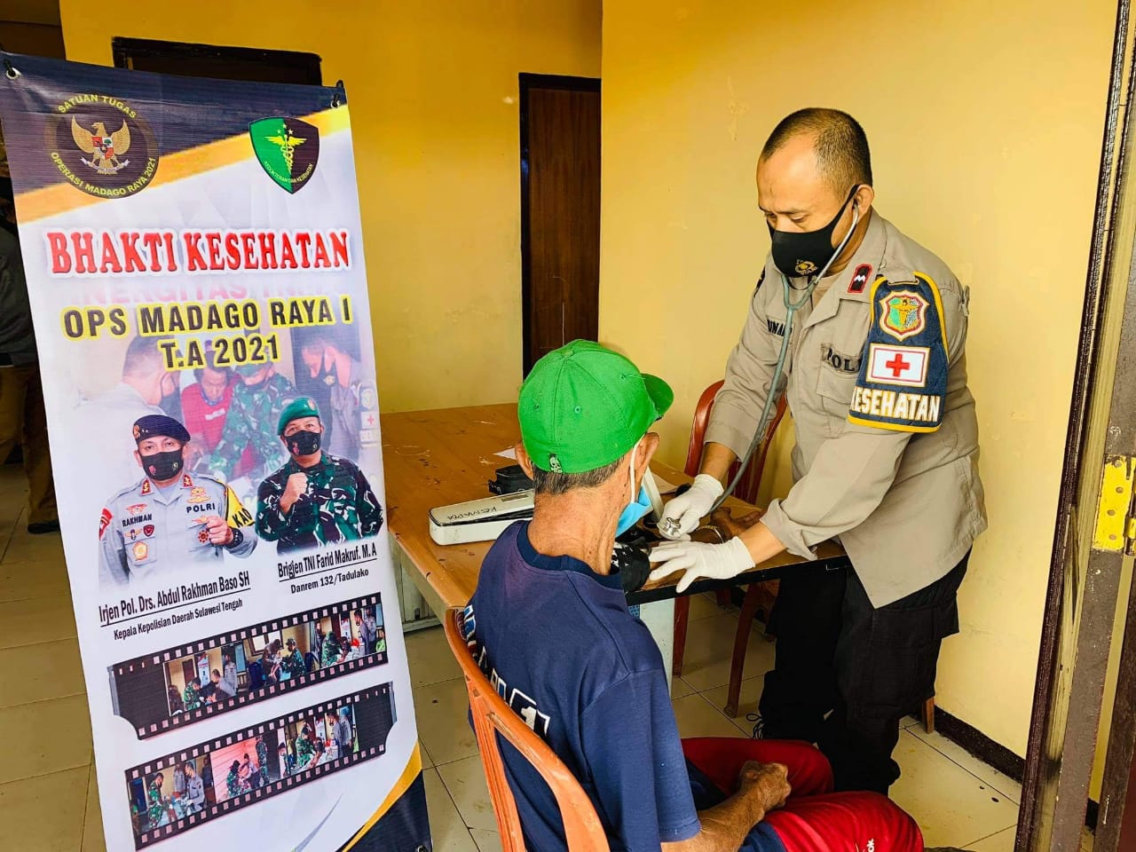 Kabid Dokkes Polda Sulteng, Kombes Pol dr. H. A. Budi Prasetijo, M.M., selaku Kasatgas V Bantuan Ops Madago Raya – 2021 Tahap I mengatakan bahwa kegiatan tersebut antara lain memberikan pelayanan kesehatan umum seperti pengukuran tekanan darah, pemberian obat-obatan dan vitamin kepada masyarakat setempat serta khinatan massal.