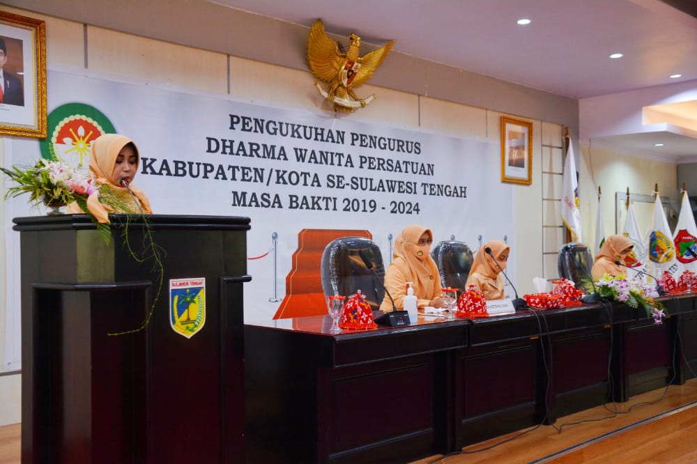 Ketua DWP Sulteng Hasdiaaty Syaifullah Djafar dalam sambutannya terlebih dahulu menyampaikan selamat kepada ketua dan pengurus DWP kabupaten/kota se Provinsi Sulawesi Tengah yang telah dikukuhkan. Diharapkan, peran aktif dalam mendukung dan menjalankan program kerja Dharma wanita persatuan Sulawesi Tengah.