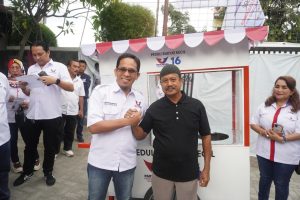 PALU,Nuansapos.com – Usai memberikan materi dan pengarahan pada rapat konsolidasi Partai Perindo,di hotel Paramasu.Wakil Sekjen,Bapak Moh.Sofyan beserta ketua Okk Bapak Yusuf Lakaseng Serta Ketua Dewan Pembina Perindo Sulawesi Tengah Bapak Ronny Tanusaputra yang ikut menyerahkan bantuan dana sebesar Rp. 2 juta dan menyerahkan gerobak untuk pelaku UKM.