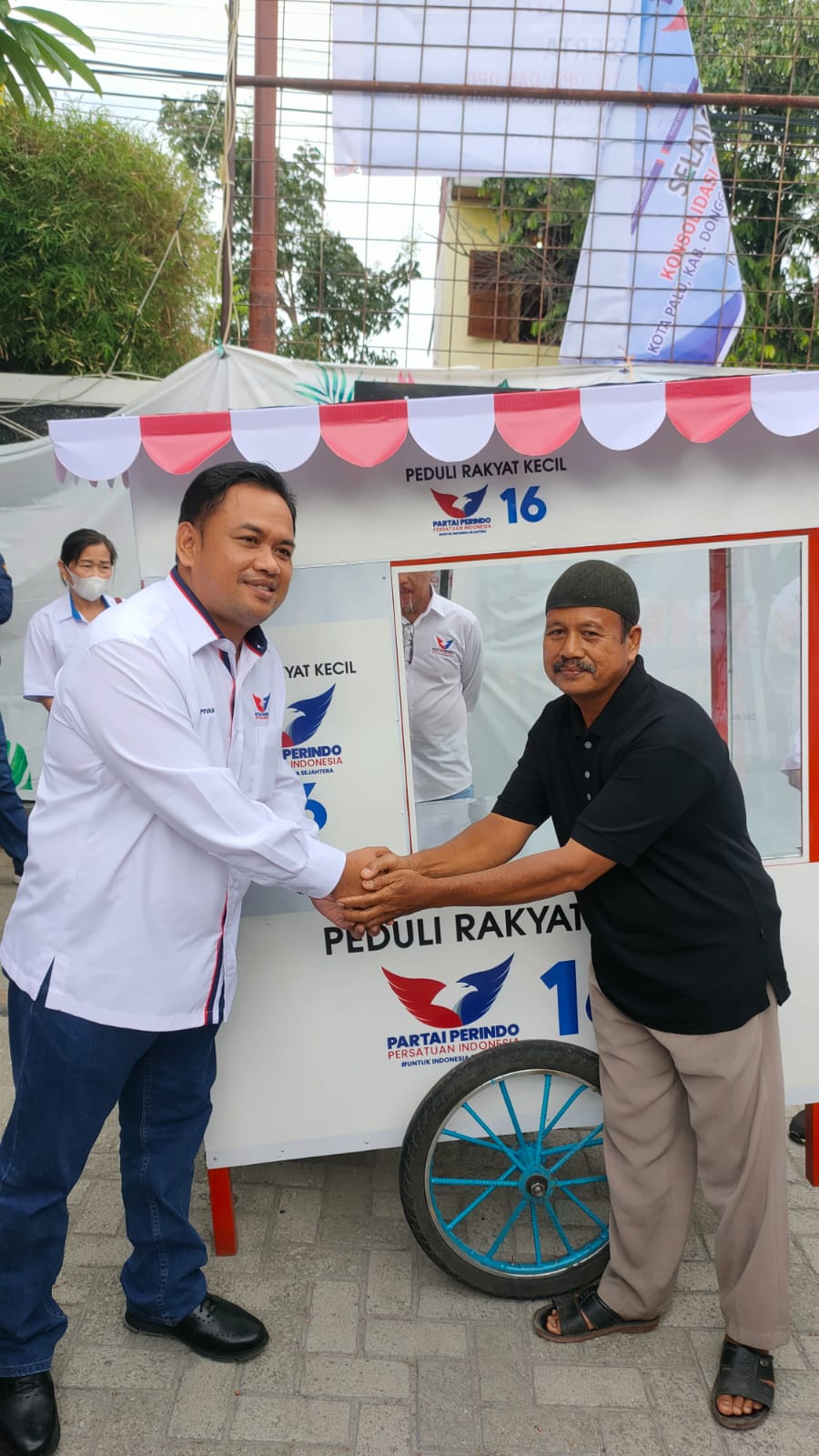 PENYERAHAN GEROBAK PARTAI PERINDO ADALAH WUJUD KEPEDULIAN PADA RAKYAT KECIL.