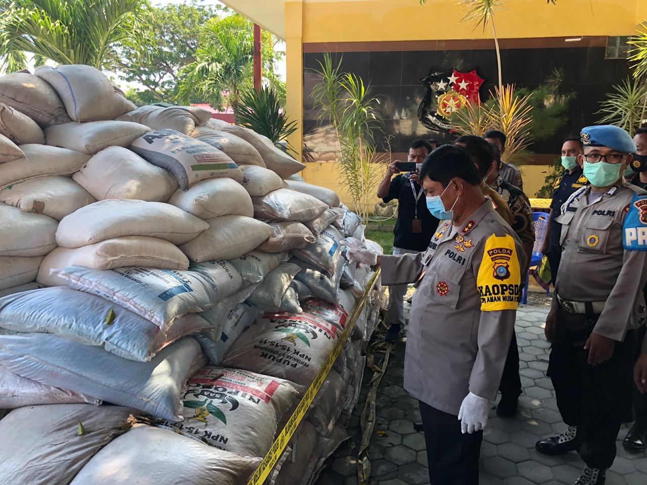 Dari kedua pelaku polisi berhasil diamankan pupuk illegal sebanyak 551 karung dan 54 lembar karung kosong bertuliskan pupuk pertanian dan perkebunan NPK 15-15-15 Niposca.