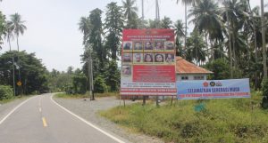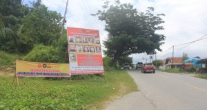 Tampak salah satu baliho yang telah terpasang di Desa Tumora, Kecamatan Poso Pesisir Utara, Kabupaten Poso atau di perbatasan Kabupaten Poso dan Kabupaten Parimo, Sabtu pagi (27/02/2021)