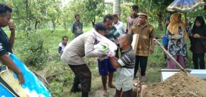Tanpa canggung Bhabinkamtibmas ini menggendong jenazah bayi mulai dari rumah duka sampai ke lokasi pemakaman dengan berjalan kaki diikuti oleh warga sekitar.
