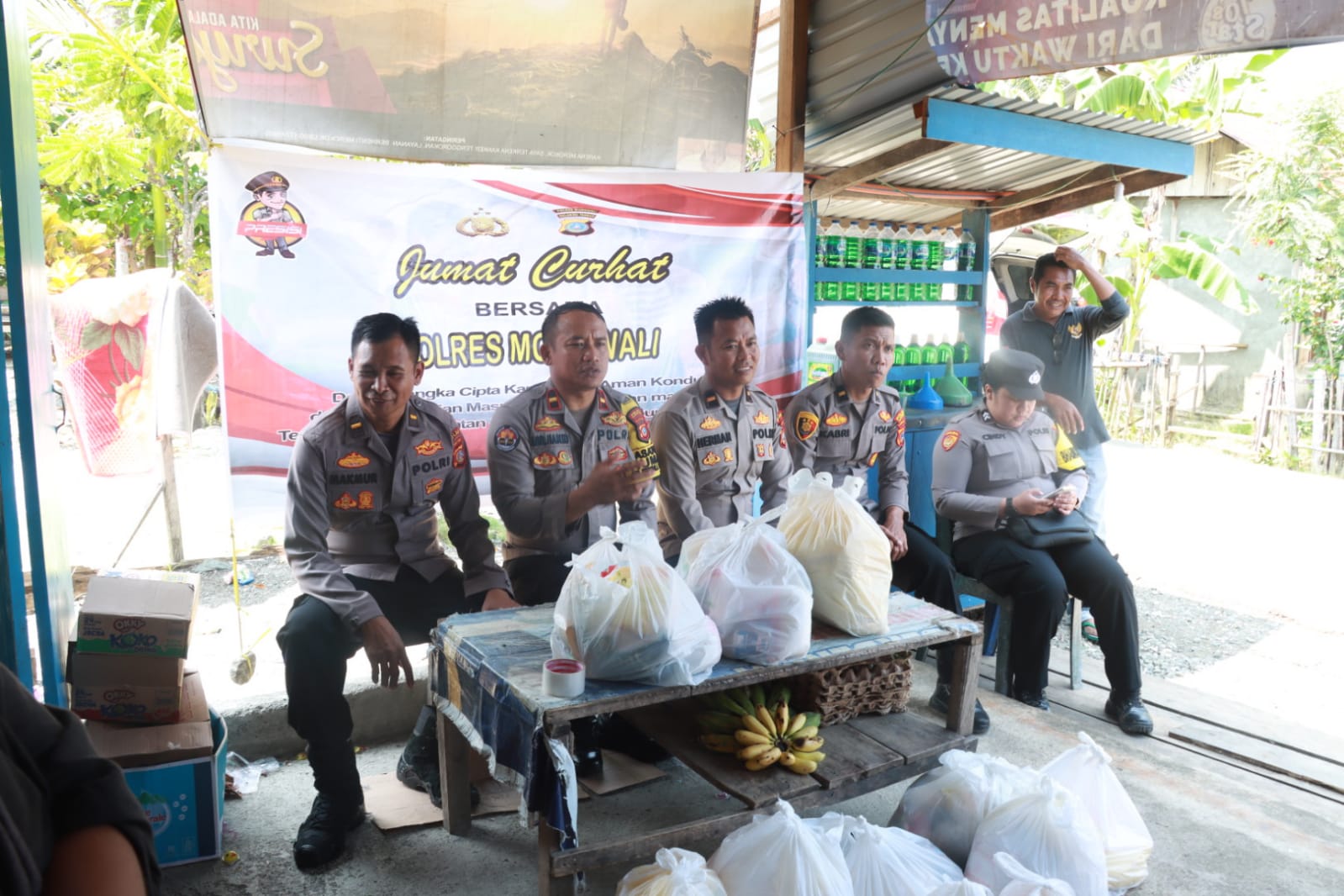 Polres Morowali Jum’at Curhat di Desa Bente Sembari Bagikan Sembako ke Warga Kurang Mampu