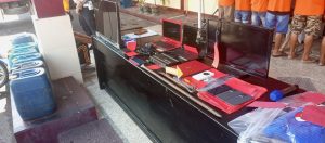 PARIMO, nuansapos.com – Bertempat di Mapolres Parimo, Kapolres AKBP Yudy Arto Wiyono SIK, MH di dampingi Kasat Reskrim Iptu Dicky Armana Surbakti dan Kanit Bidhumas Polres Parimo Iptu J. Turangan mengelar Press Release sejumlah kasus Tindak Pidana yang berhasil diungkap oleh jajaran Satreskrim sejak Januari hingga Juni 2022 didepan awak media, Kamis (16/6/2022).
