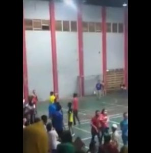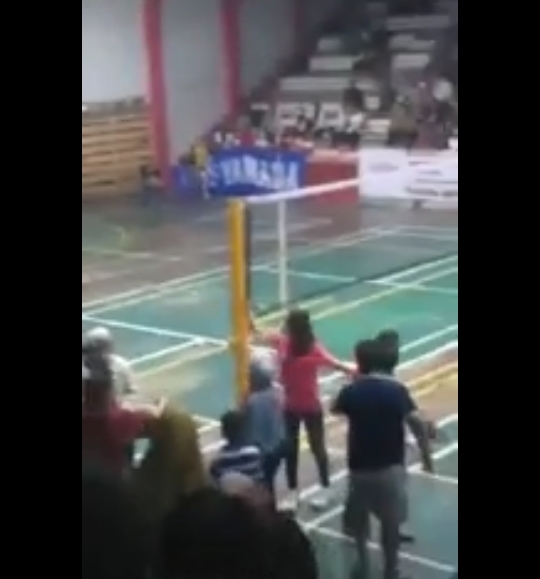 Teriakan dan cemohanpun memecah gedung olahraga tersebut.