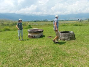 Kedua wisatawan asing asal Kanada di areal megalitik Tadulako, Lembah Behoa, Doda sebelum melanjutkan perjalanan dan bermalam di Wuasa.