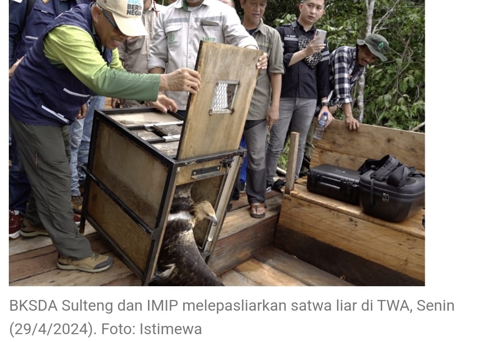 Dalam kesempatan yang sama, tim BKSDA juga melepasliarkan tiga ekor burung elang bondol (Haliastur indus). Mulyadi mengatakan keberhasilan pelepasliaran ini berkat peran serta PT IMIP dan komunitas pecinta lingkungan Morowali, dan warga sekitar Kolonodale dan TWA Tokobae.