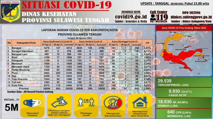 Sementara kasus Pasien Covid yang meninggal dunia di Sulteng saat ini berjumlah 840 kasus.