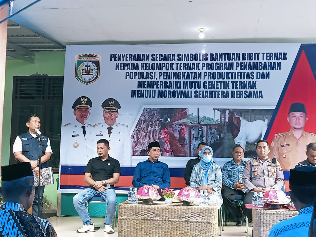 MOROWALI, Sulawesi Tengah- Dinas Pertanian Ketahanan Pangan (DPKP) Kabupaten Morowali melaksakan penyerahan secara simbolis bantuan bibit ternak kepada kelompok ternak di Morowali untuk program penambahan populasi dan peningkatan produktivitas serta memperbaiki mutu genetik ternak menuju Morowali Sejahtera. Bertempat di kantor Desa Sakita, Kecamatan Bungku Tengah, Kabupaten Morowali, Jum’at (29/07/2022).