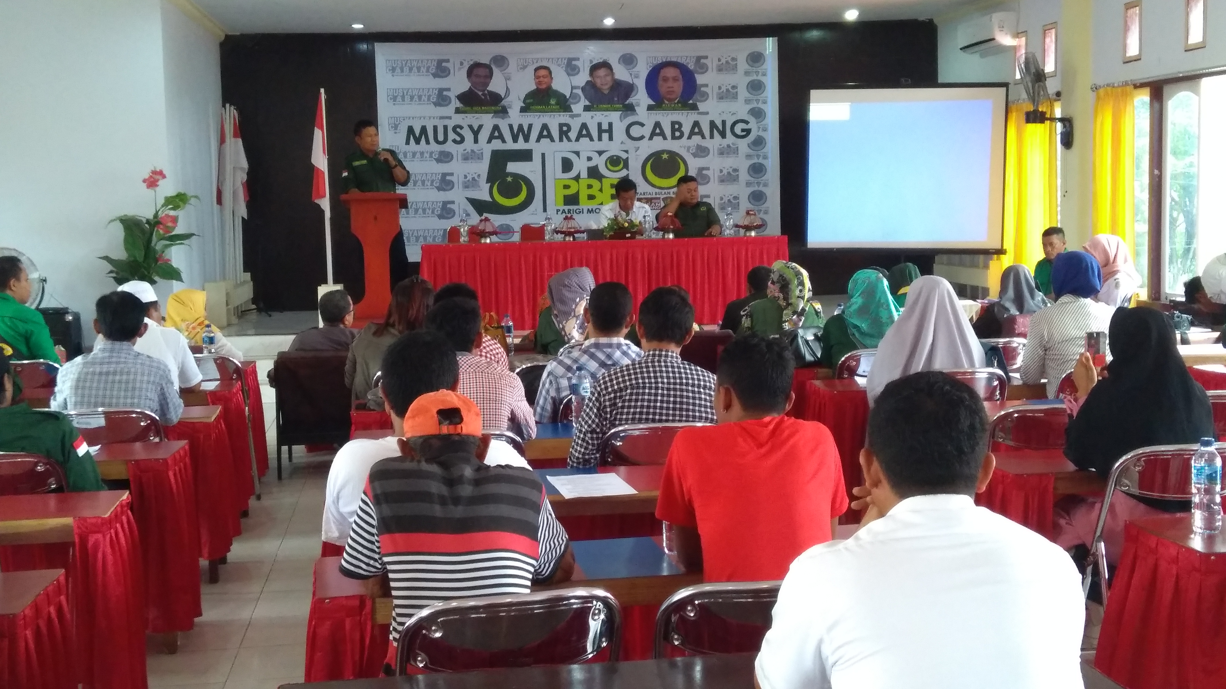 Dalam sesi pembukaan yang dihadiri Asisten Pemerintahan dan Kesra Drs H Samin Latandu mewakili Pemkab dan komisioner Bawaslu Kabupaten Fatmawaty ST serta Ketua DPW PBB Provinsi Sulawesi Tengah Herman Latabe SH ternyata molor dari jadwal undangannya.