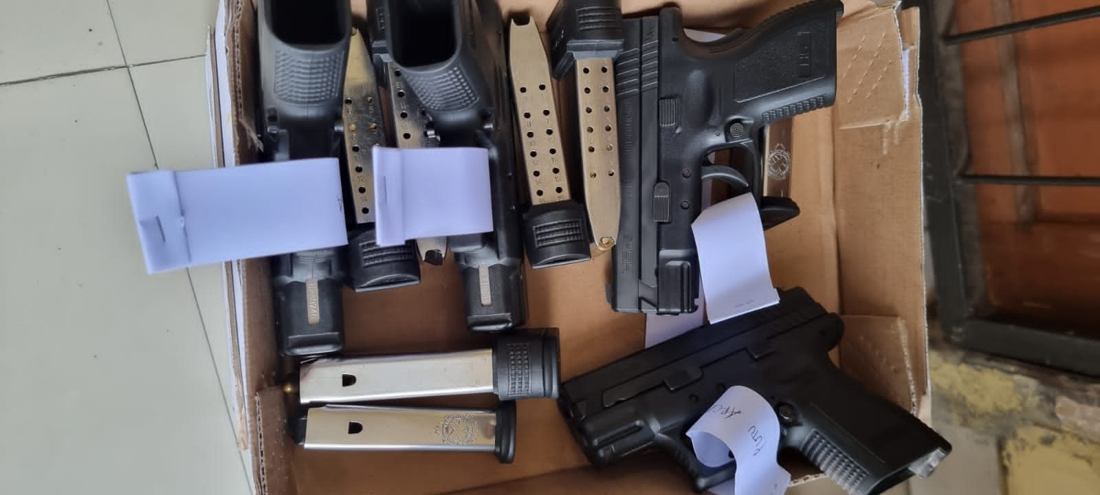 Saat ini beberapa pucuk Senjata Api milik anggota pengamanan yang bertugas saat kejadian yang dikumpulkan sebagai babuk penyelidikan dan akan di uji balestik.