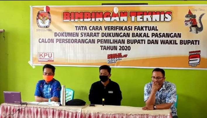 Lebih dalam dijelaskannya, salah satu poin mendasar dalam bimtek itu yakni mengenai persiapan dan pelaksanaan verifikasi faktual dukungan terhadap bakal calon dari jalur perseorangan atau independen.