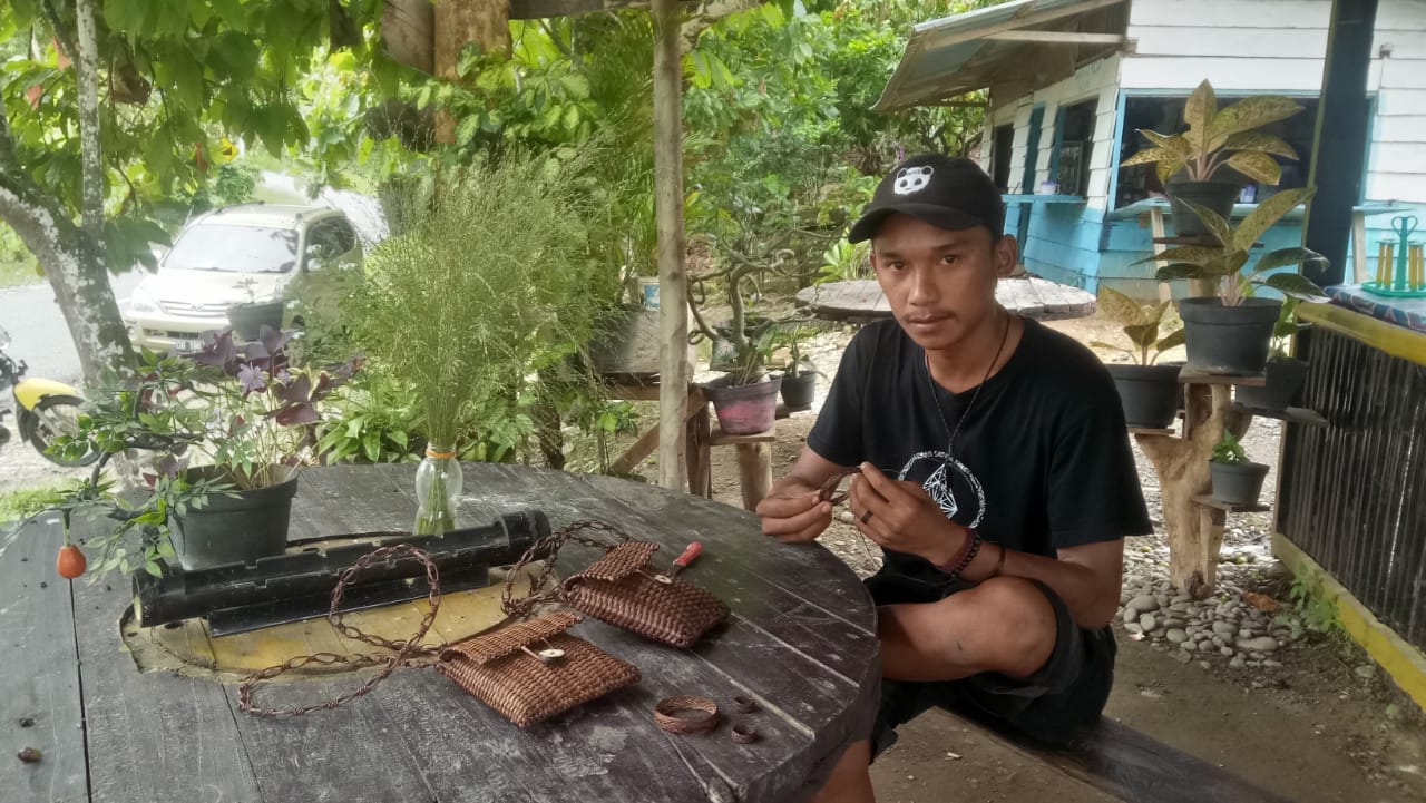 Karyanya luar biasa, dia bisa merajut kulit rumput liar sebagai sebuah kerajinan tangan yang mampu di olahnya dalam berbagai macam bentuk seperti tas, cincin, kalung dan gelang-gelangan.Buah tangan dan kerajinan pemuda tampan usia 26 tahun ini sebenarnya bisa di eksploitasi dan menjadi bahan eksport tidak hanya ke luar daerah namun bisa pula menembus hingga ke dunia mancanegara.