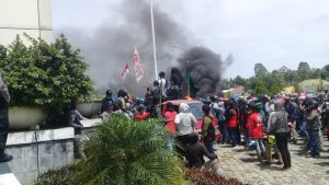 Pantauan media ini sempat dua kali terjadi aksi dorang terobos blokade polisi di halaman kantor DPRD Morowali yang disusul dengan lemparan gelas air mineral serta bakar ban mobil yang menimbulkan kepulan asap membumbung ke atas.