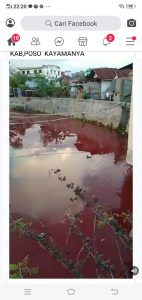 Sejauh pemberitaan ini, belum ada keterangan resmi dari pihak terkait, apa yang menjadi penyebab utamanya, sehingga air di bantaran sungai kecil yang membelah Kelurahan Kayamanya Kecamatan Poso Kota, mendadak jadi berwarna merah sehingga mengundang pertanyaan warga.(NP06).