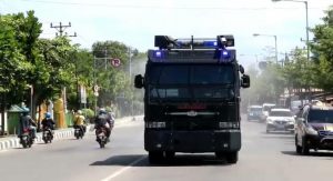 Watercanon Polda Beraksi, Jalan Dalam Kota Palu di Disinfektan